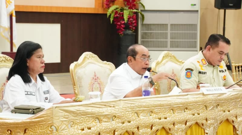 Wali Kota Gorontalo, Adhan Dambea saat memimpin pertemuan bersama Camat dan Lurah. (Foto/Diskominfo)