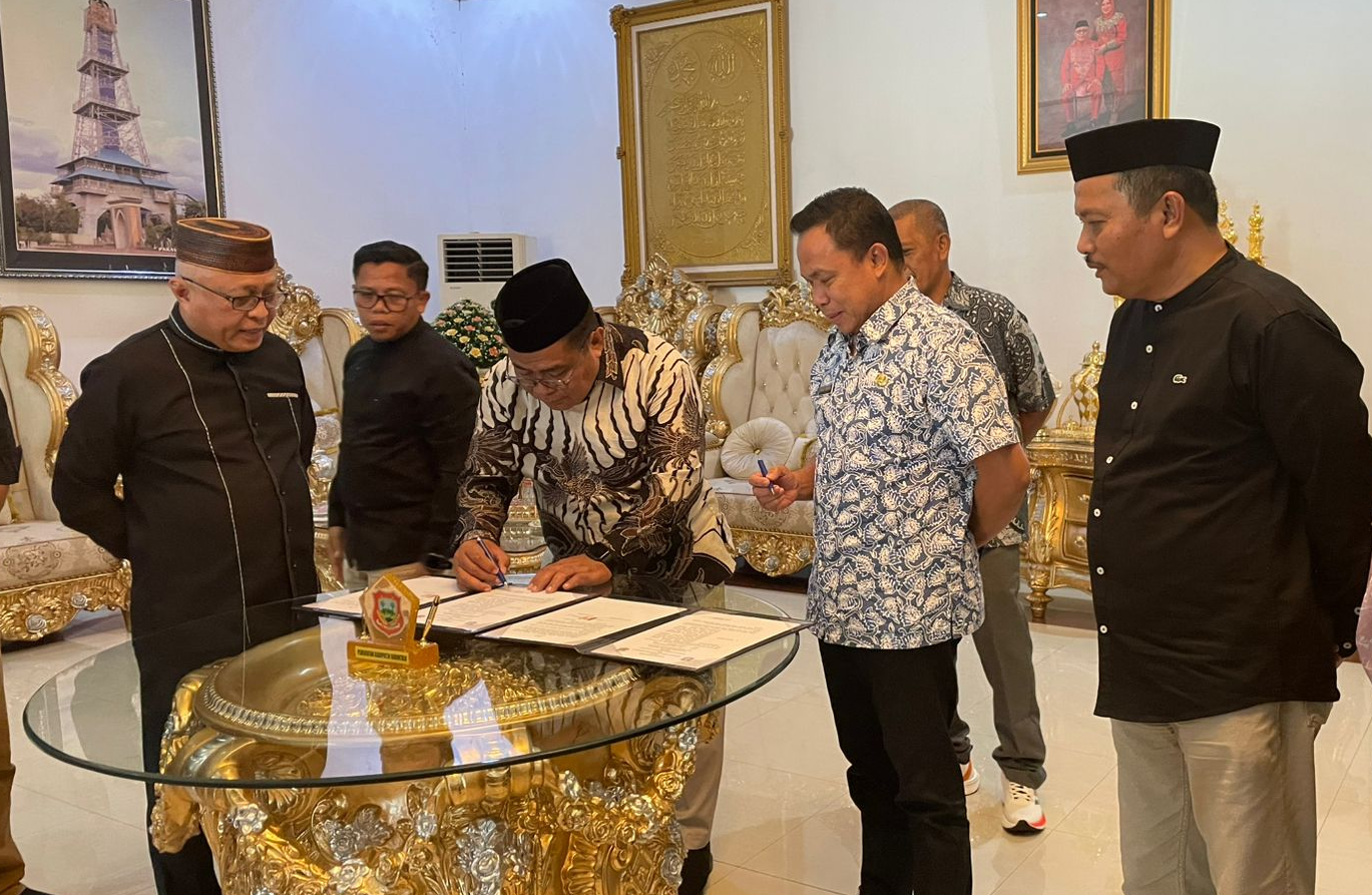 Penandatanganan Pinjam Pakai ini dilakukan Sekretaris Daerah Kabupaten Gorontalo Sugondo Makmur bersama Kepala Dinas Pemuda dan Olahraga (Dispora) Provinsi Gorontalo, Daniel Ibrahim disaksikan langsung Bupati Gorontalo Sofyan Puhi di Rudis Bupati Jumat (19/09).