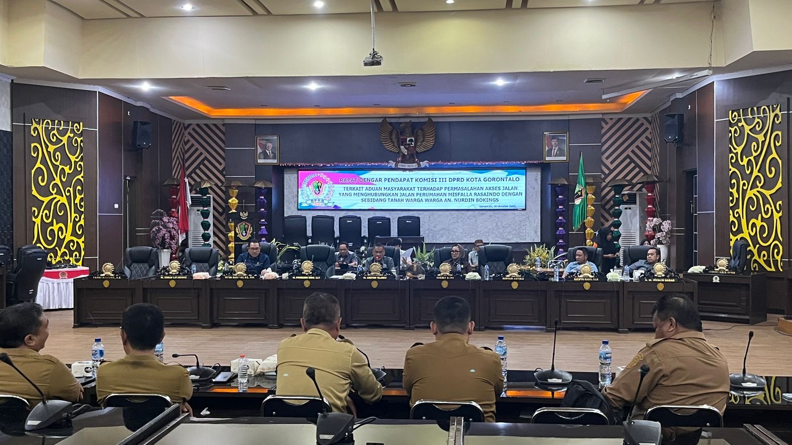 Suaranet.com, Gorontalo – DPRD Kota Gorontalo mengadakan Rapt Dengar Pendapat (RDP), terkait aduan masyarakat terhadap permasalahan akses jalan yang menghubungkan jalan perumahan Misfala Rasaindo dengan sebidang tanah warga An. Nurdin Bokings, Senin (20/10/2025).