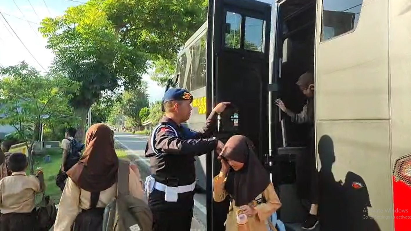Layanan Bus Sekolah Gratis Brimob Polda Gorontalo, (Foto/Suaranet.com)