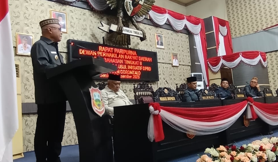 Suaranet.com, Limboto – Bupati Kabupaten Gorontalo Sofyan Puhi didampingi Wakil Bupati Tonny Junus menghadiri dua paripurna DPRD, Senin (29/12/2025).