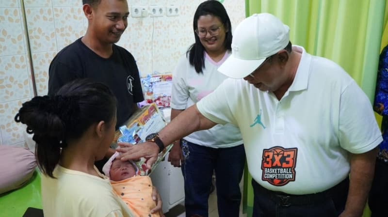 Tak sekadar simbolik, Wali Kota Adhan turun langsung mengunjungi para bayi dan ibunya di sejumlah rumah sakit. Kunjungan dilakukan di RS Siti Khadija, RSUD Aloei Saboe dan RS Bunda.