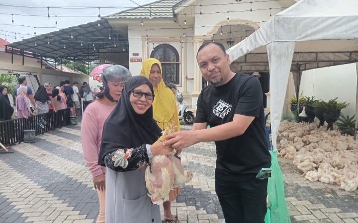 Aleg Fahmi Mohune berbagi beras dan ayam jelang Ramadan. (Foto/Suaranet.com)